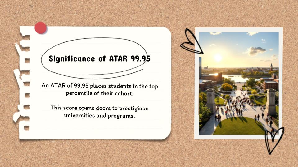 - Competitive courses (e.g., Medicine, Law) often require ATARs of 90+.